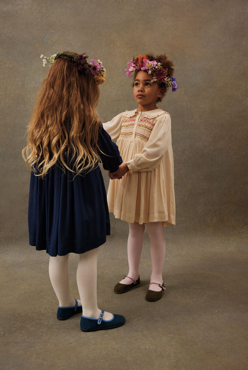 Nos créations se distinguent par leurs détails bohèmes iconiques : broderies délicates, smocks raffinés, volants, finitions festonnées, dentelle, pompons ou détails de crochet. Certaines de nos robes fille sont pensées pour être portées en toute saison. Assez légères pour l’été, elles se transforment en tenues d’hiver simplement en y ajoutant des collants ou une veste chaude. Cette polyvalence permet à nos pièces de traverser les saisons avec charme.