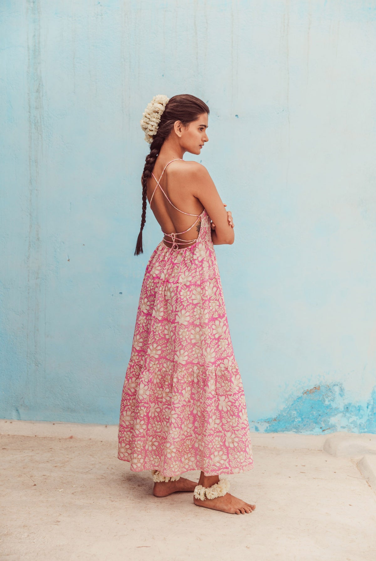 • Robe longue fleurie en coton.