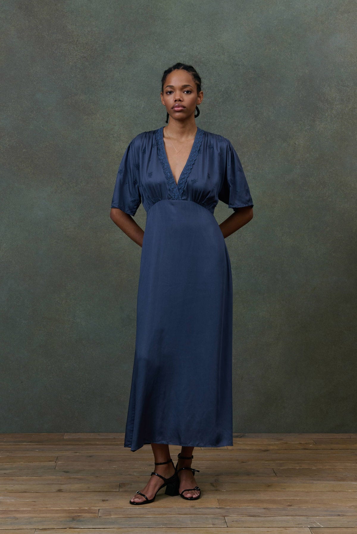 • Robe longue en satin uni.