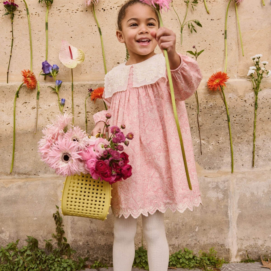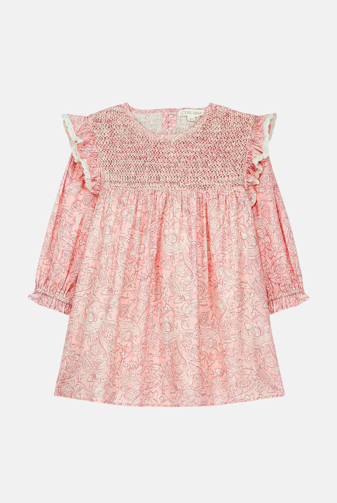 • Haut de la robe entièrement smocké avec détails brodés à la main.